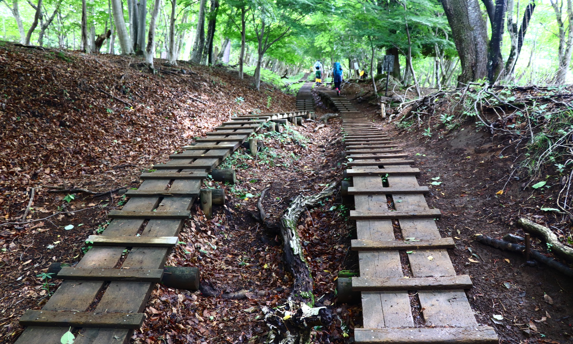 最初は緩やかな登りで良いウォーミングアップになりますが、この日は晴れてて気温も高く少し歩くだけで汗だらだら、、風もないので滝のように流れでてくる。まだ序盤なのにこの汗の量は相当。水分もつかな・・一抹の不安を抱えながら足を進めます。登山道のほとんどは整備されていて歩きやすいのですが本当に長い。