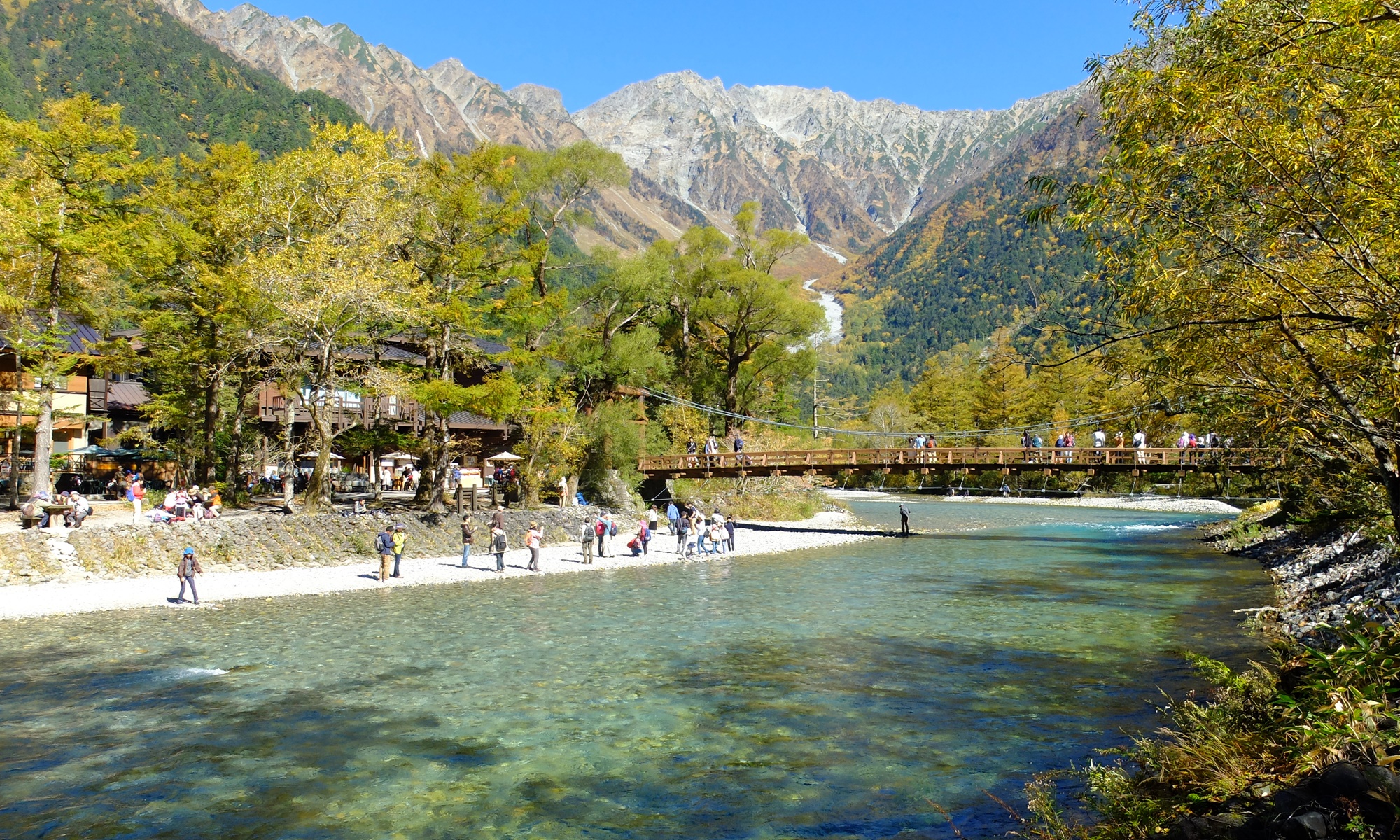 長い長い道のりを経て河童橋へ戻ってきた喜びより先に人の多さにビックリ!橋を埋め尽くすほどの人、人、人。改めて観光地であることを実感しました。