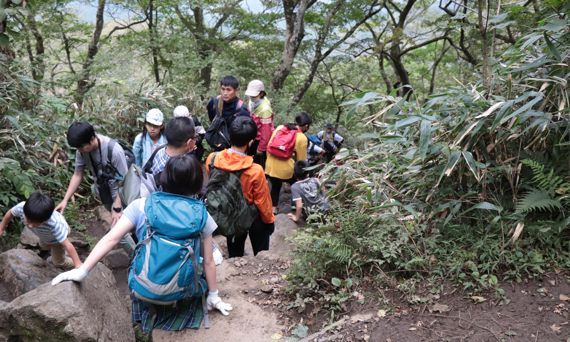 先述している通り、下りは白雲橋コースを行きます。登山客のピークなのか登りは渋滞しておりました。道がとても狭いのですれ違いも難しくなかなか進めない。。。