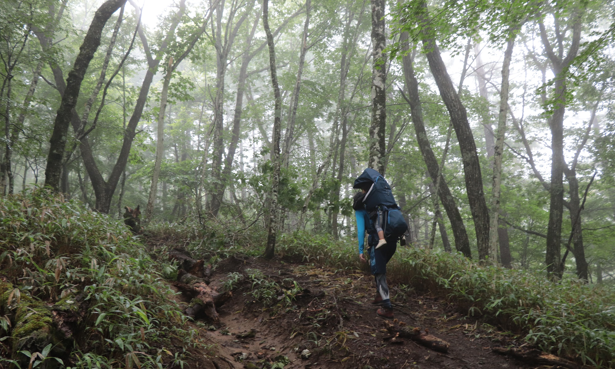 足元が悪い道も少し歩いてもらいましたが、時々転びそうになります。まだちゃんと一緒に登山出来るようになるには時間が必要そうです。本人が登山に付き合ってくれるかどうかは別ですが…笑