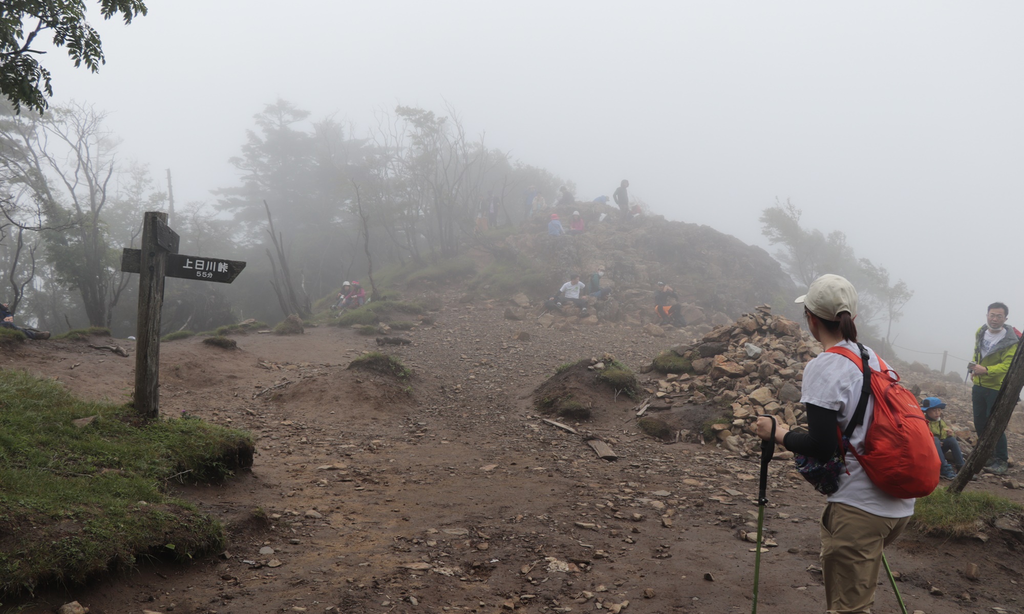 こんな天気でも一部で渋滞。駐車場でも思ったけど人気の山よなあ。