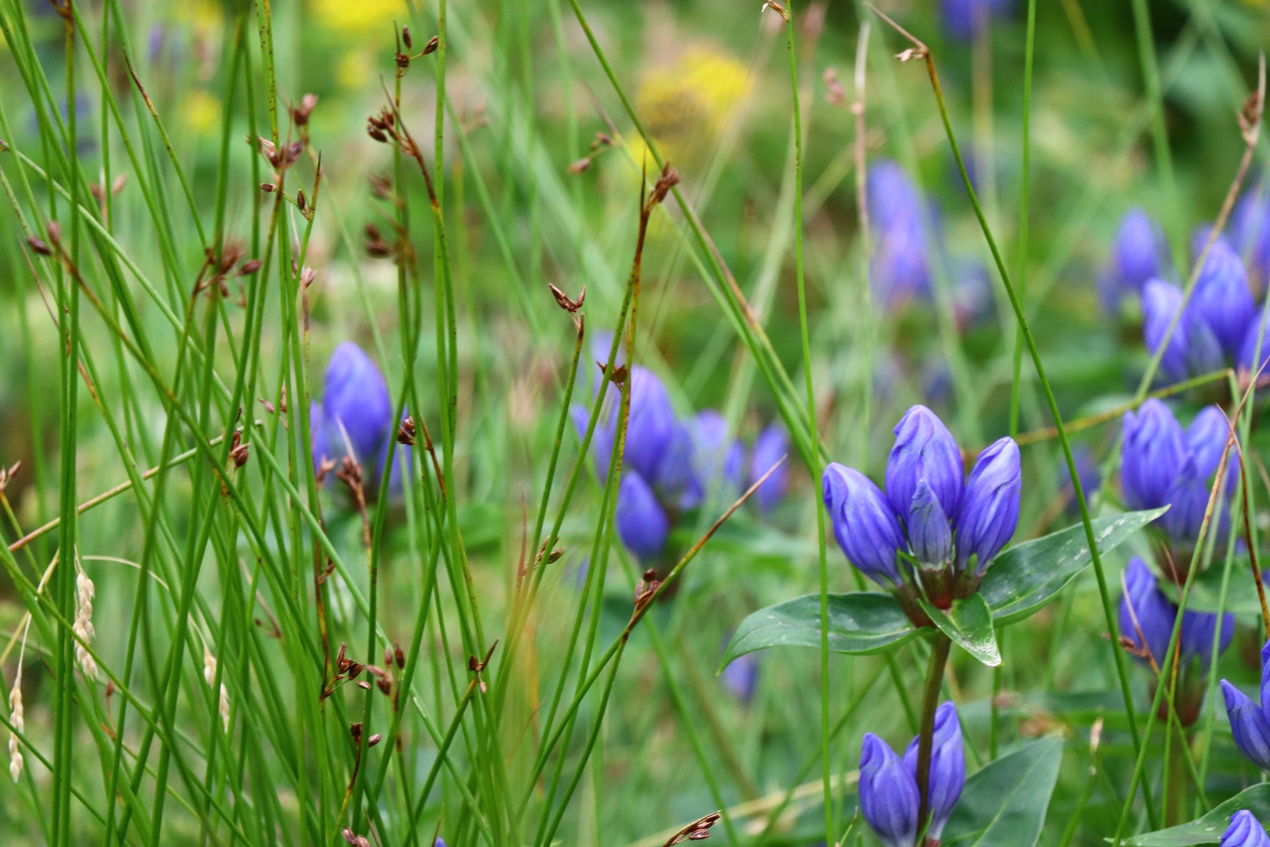 高山植物の見ごろは過ぎていましたがまだ咲いている花も。こちらはエゾオヤマリンドウ。