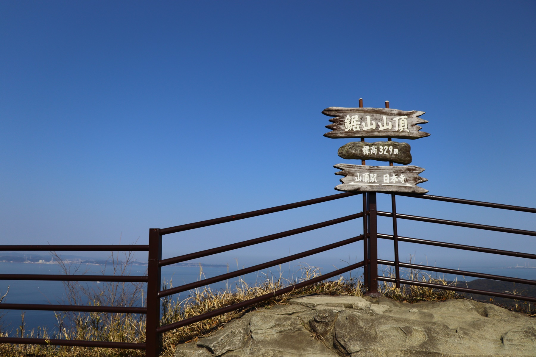 ロープウェイ山頂駅から約2時間。鋸山の頂に到着。展望はお世辞にも良いとは言えませんが、どんな山でも山頂に着くときの達成感はなんとも言えない嬉しさがありますね。