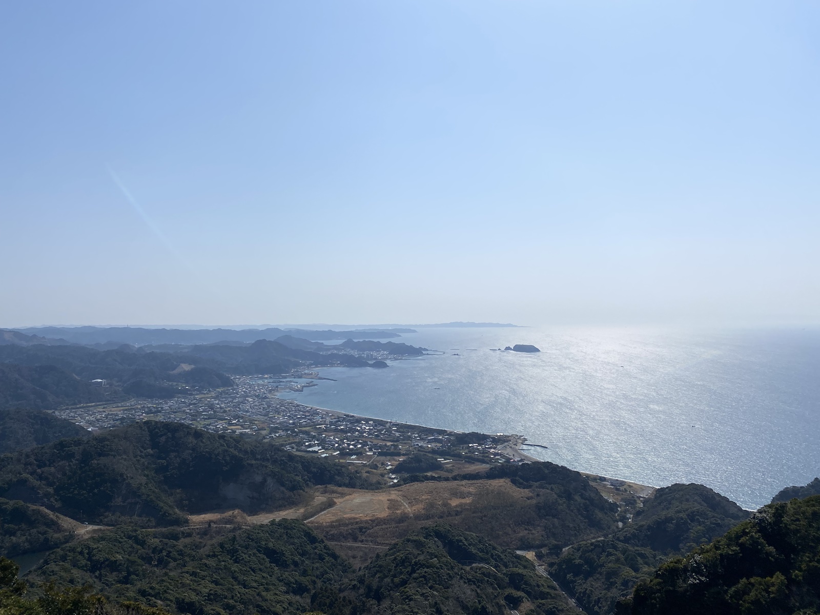 伊豆大島や富士山を望める絶景ポイント。(この日は霞んでいてどちらも見えず)山頂より眺めがいいので立ち寄りをオススメします。