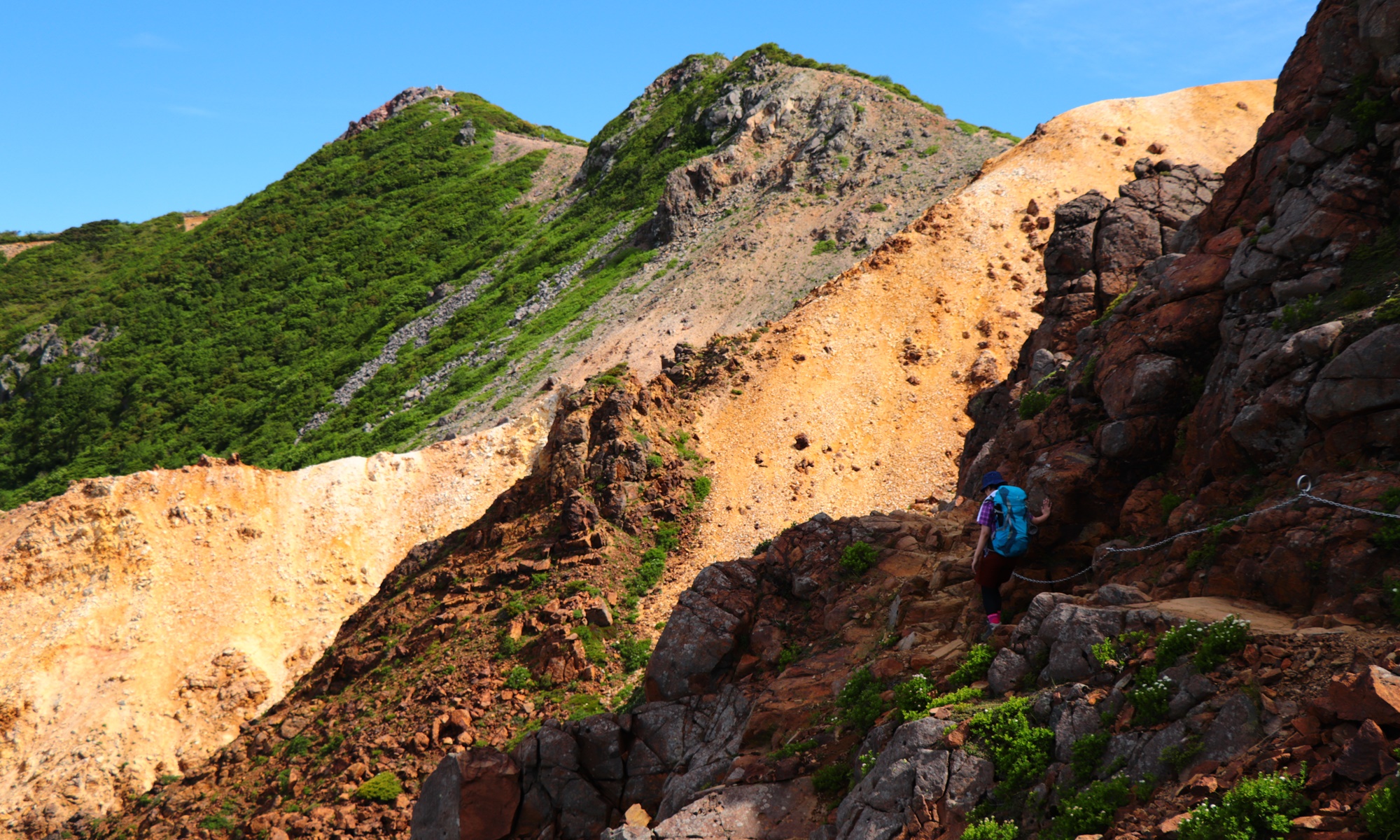 戻る途中、間もなく朝日の肩に着くというところでしょうか。茶臼岳バックにいい写真が撮れる場所がありましたので登る方は是非。