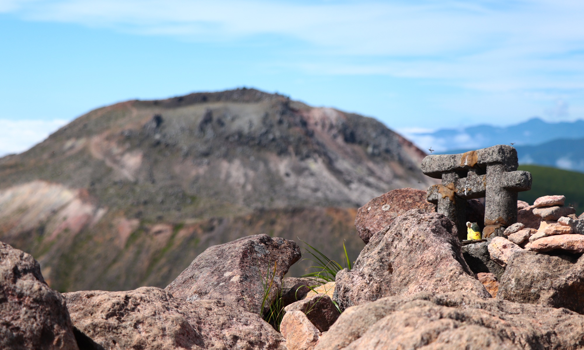 雲のせいで眺望もなくお鉢巡りもあっさり終わって下山開始。天気が悪化してきて遠くでは雷の音が。ほんの少しだけ雨も降ってきたので先を急ぎます。
