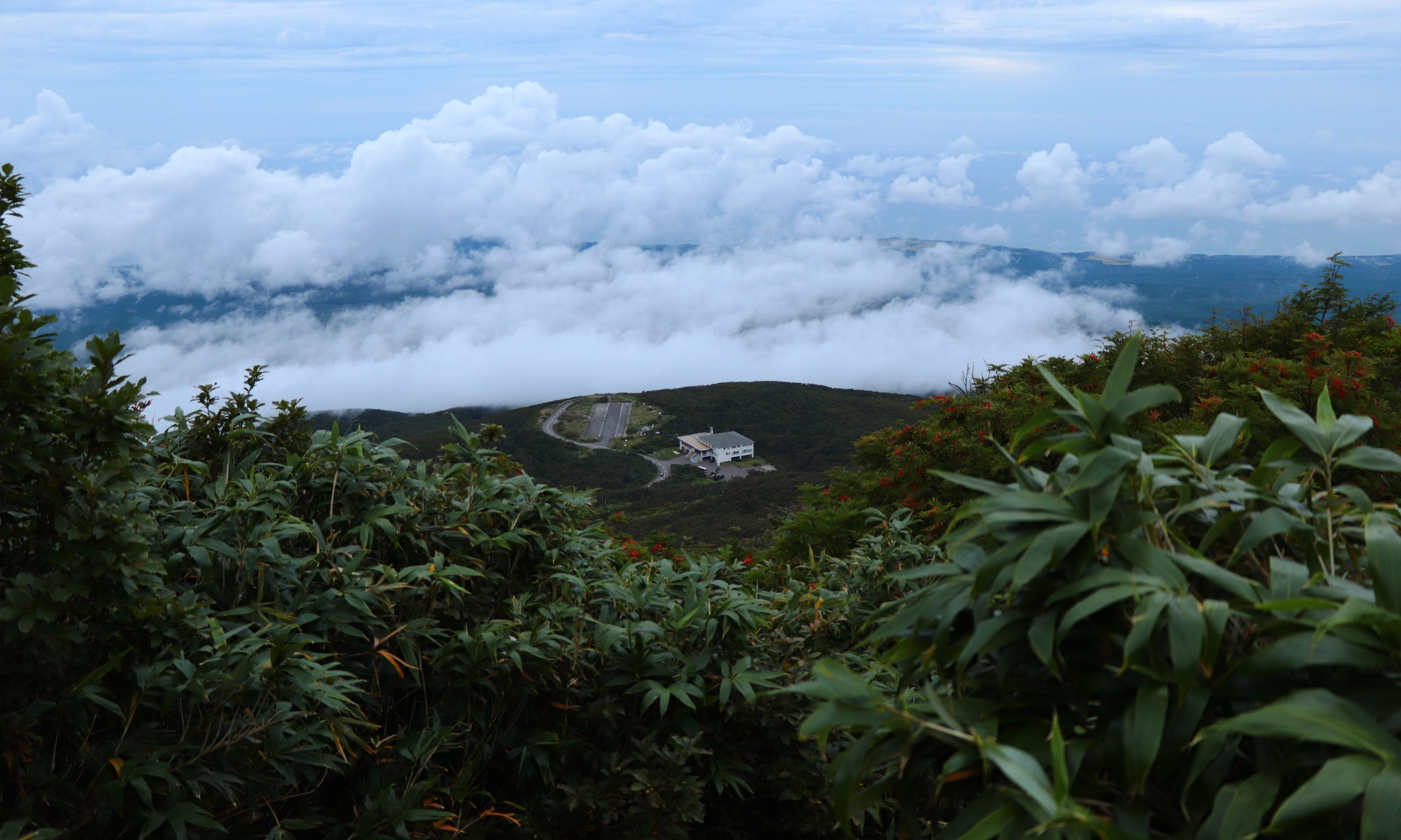 往路で記載しましたが鳥海湖の近くには小屋があり、小屋からの眺めは良いものでした。来た時は霧がかっていて見えませんでした。