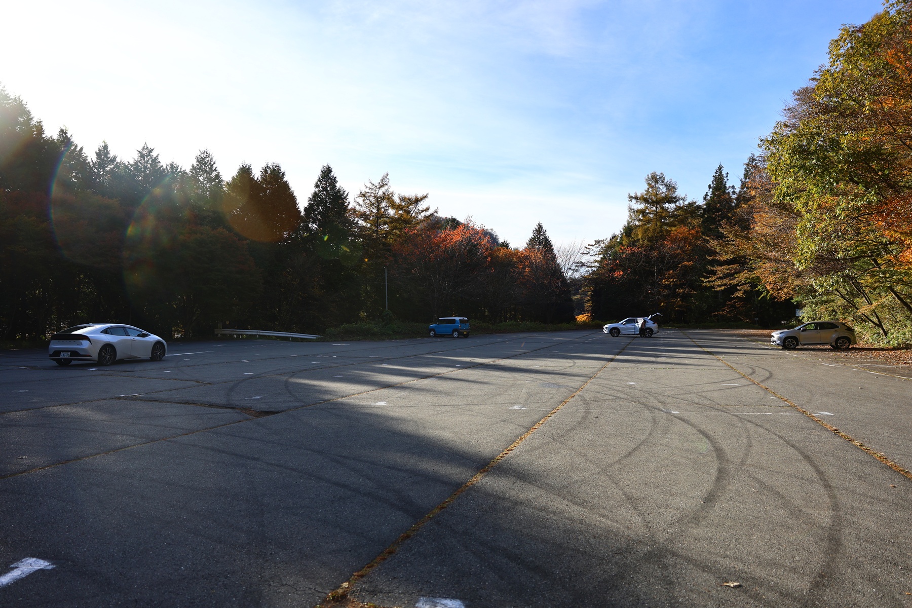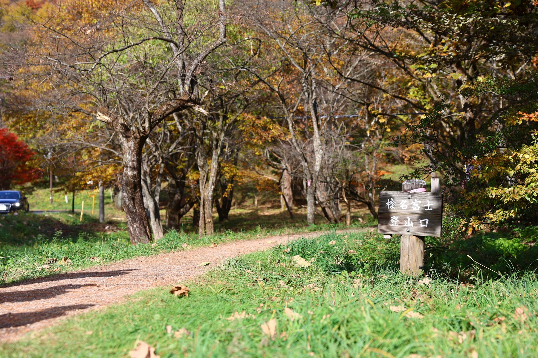 榛名山はいつかの山の総称で、最高峰は掃部ヶ岳。たぶんネットで検索すると一番出てくるのが榛名富士。今回はこの2つの山に登っていきます。まずは掃部ヶ岳に登るべく駐車場へ。タイヤ跡がすごいですが広々とした駐車場です。
