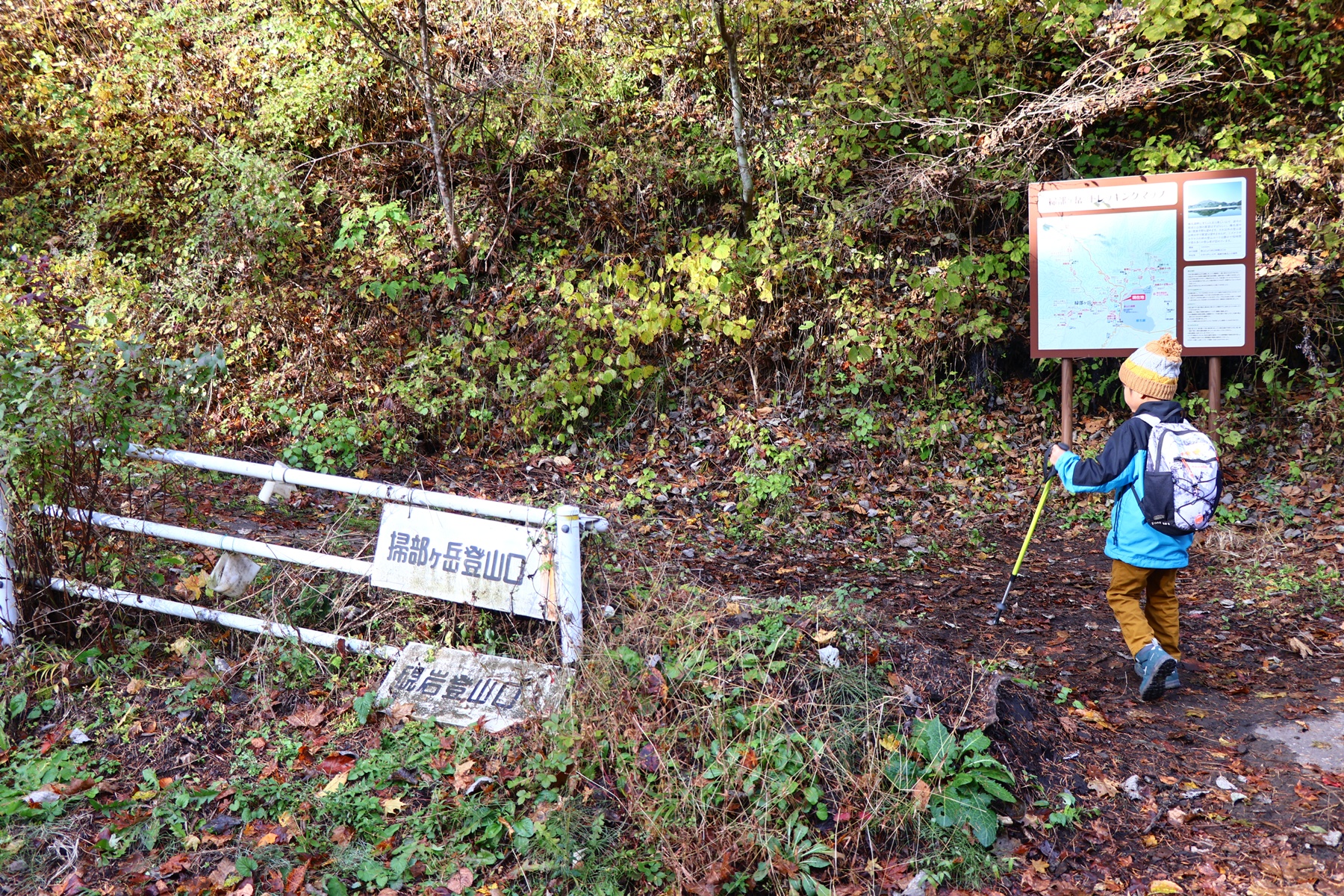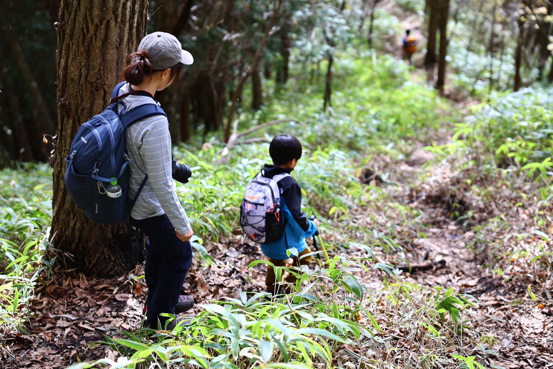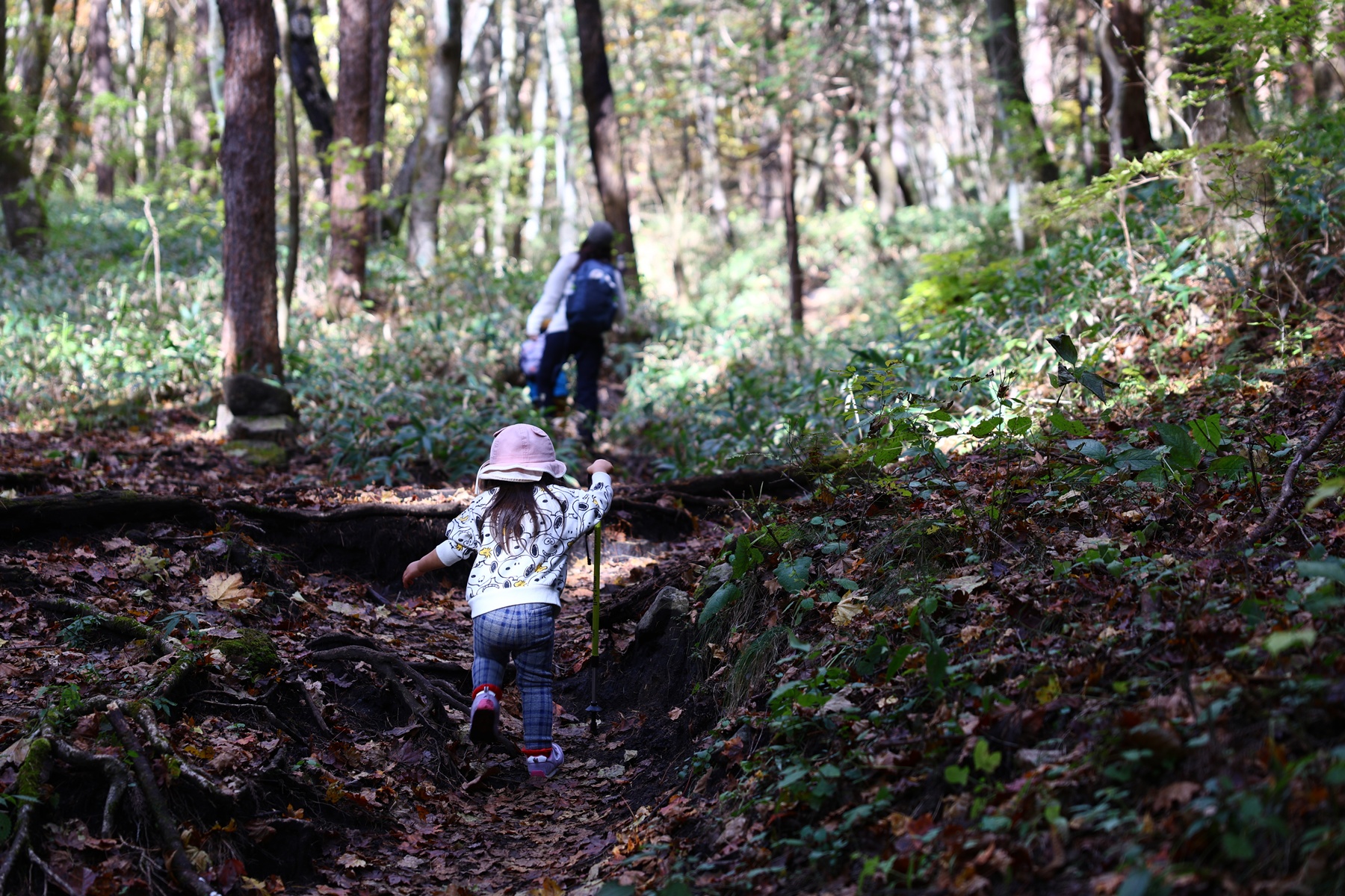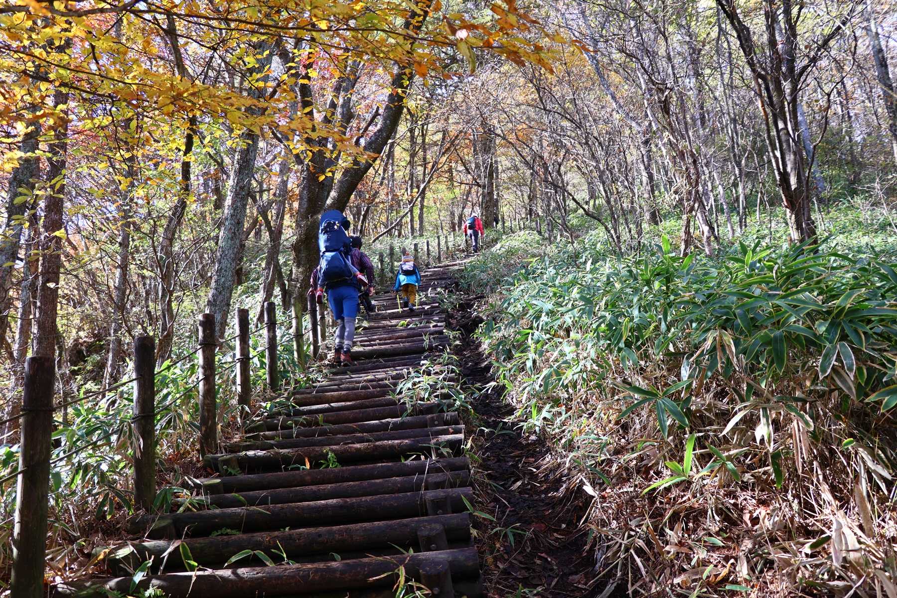 木々の間から射す太陽の光が暖かく、いい感じで葉っぱたちを照らしてくれます。序盤は緩やかな上り坂。