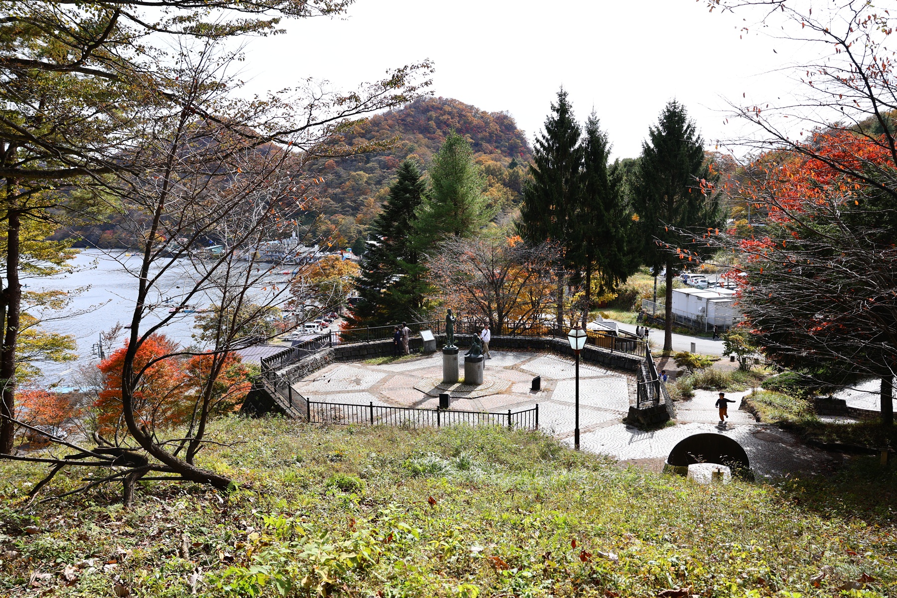 目の前の湖が榛名湖。万葉集の時代から上野国(今の群馬県)を象徴する「伊香保の沼」として知られていたそうです。もうスケールが大きすぎて、すごいとしか言いようがない。